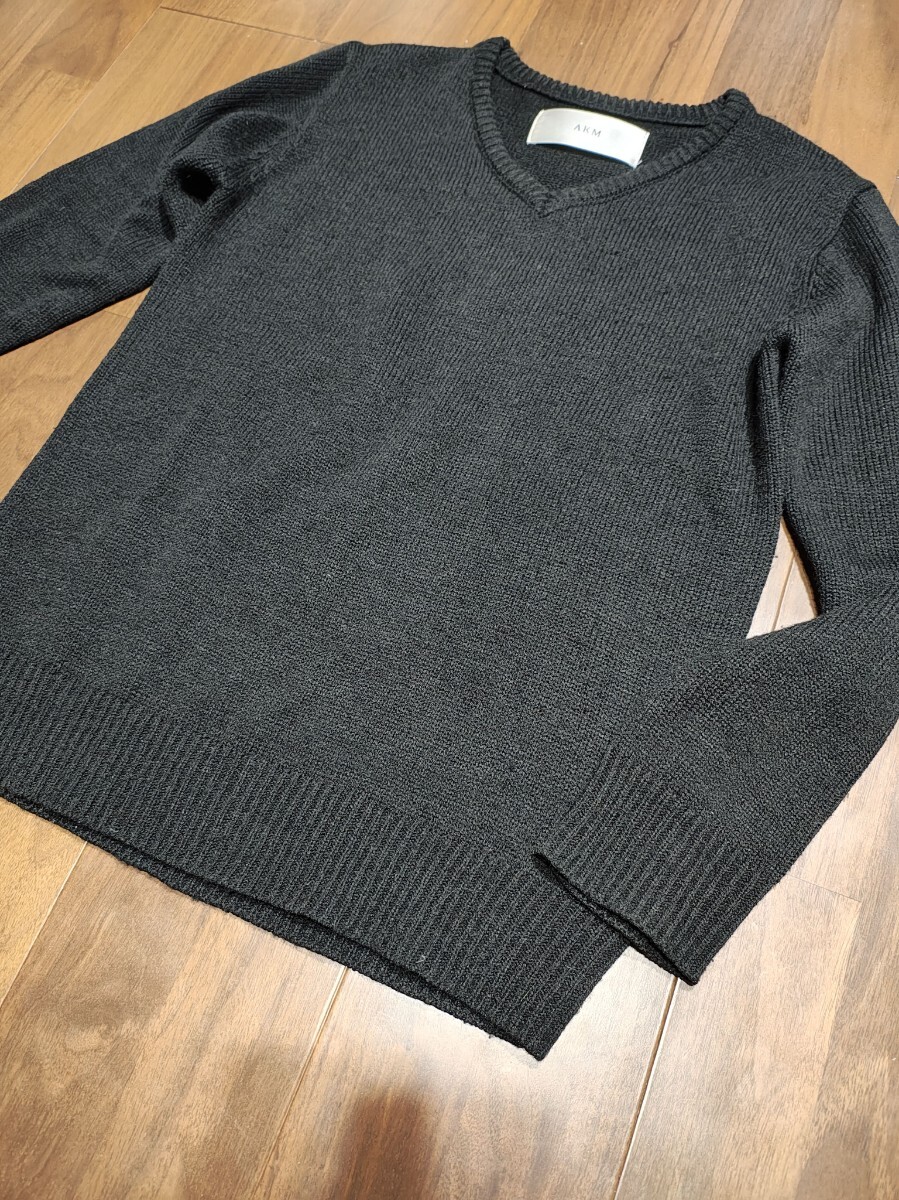 - エイケイエム/AKM Vネックニットセーター/無地シンプル【S】黒 メンズ