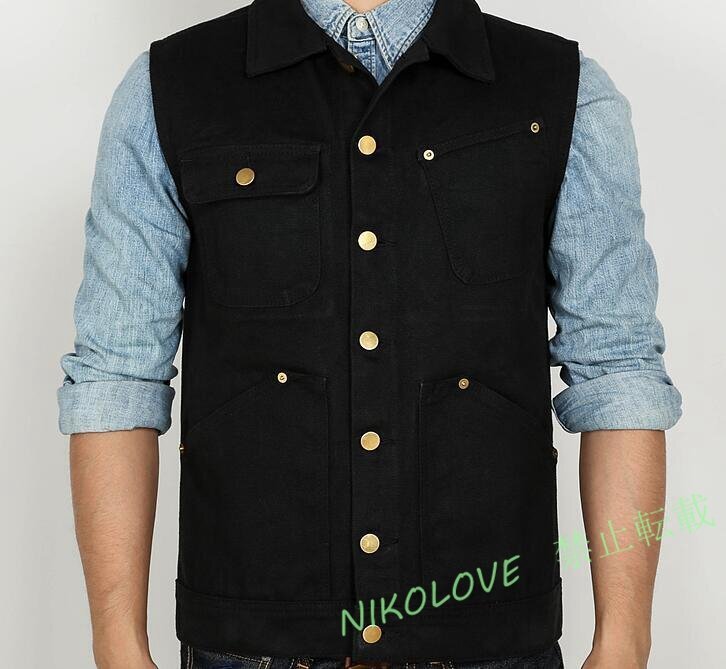 - ☆新品アメリカンレトロワックスクロスベスト 防水17オンスヘビー級コミューターバイクライダーベスト 黒