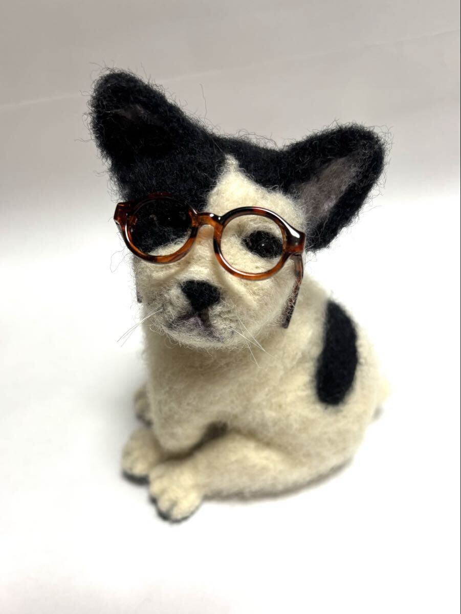 - 羊毛フェルト 犬 いぬ フレンチブルドッグ メガネ インテリア 置物 ドール ハンドメイド