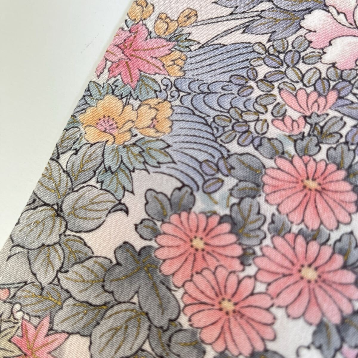 - 小紋 総柄 草花の染めに鳥 ちりめん 着物 正絹 W-5315