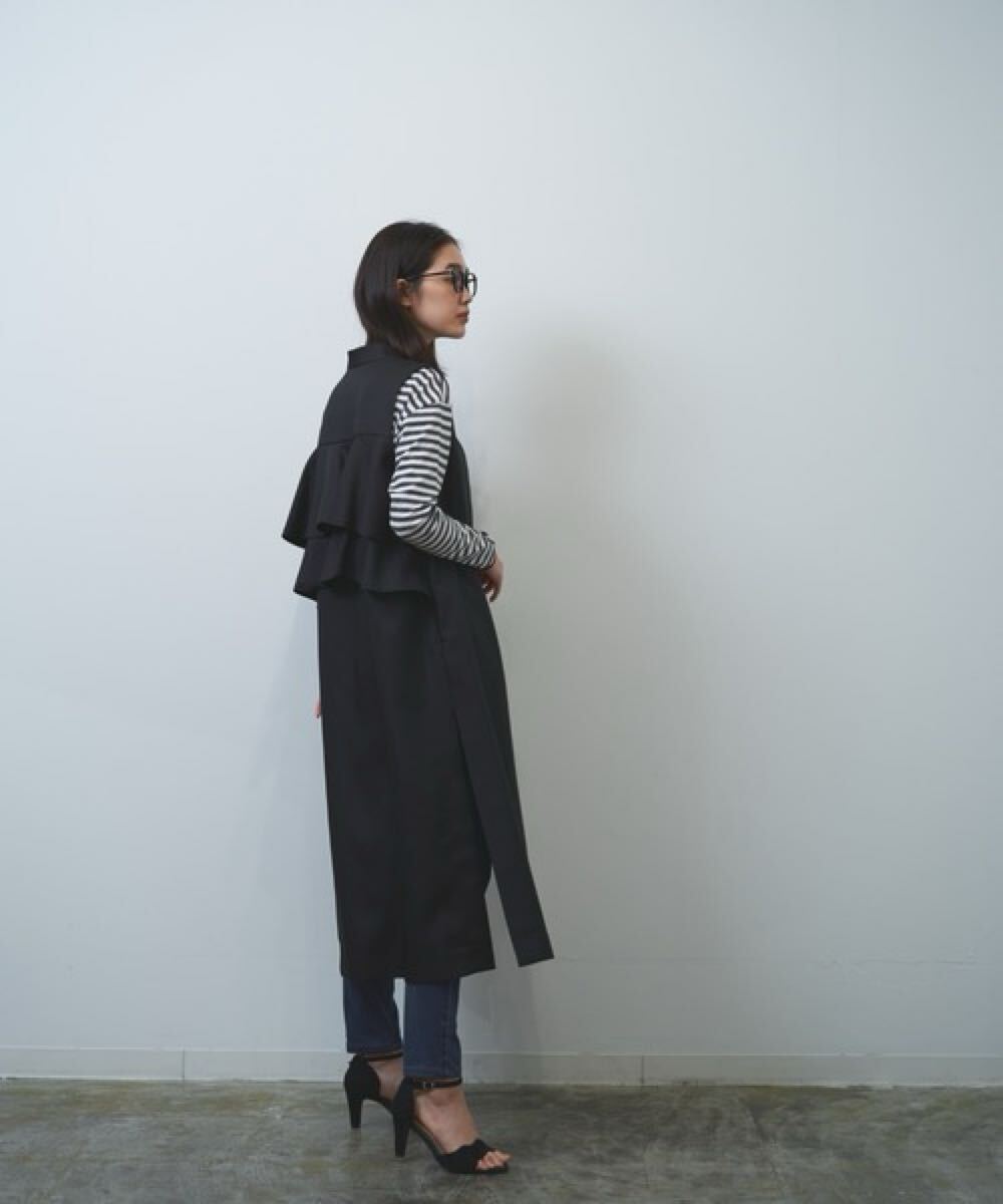 - 未使用完売 ヘレンチア HERENCIA バッグ フリル ロングジレ ブラック黒 ベスト