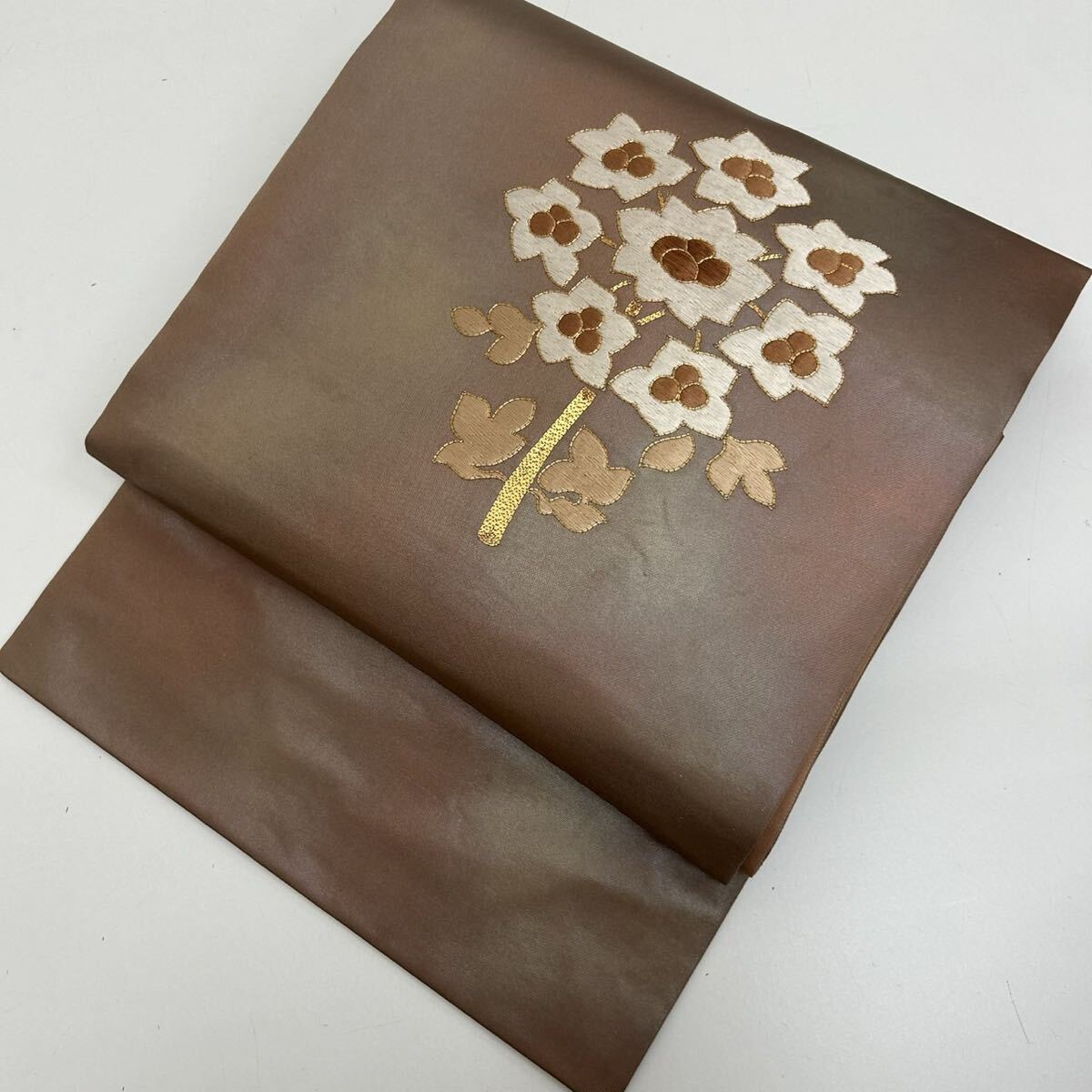 > 名古屋帯 刺繍に金駒刺繍 花 九寸 着物 正絹 W-5268