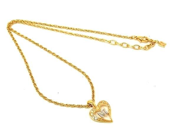 - ■美品■ NINA RICCI ニナリッチ ラインストーン ハート ネックレス ペンダント アクセサリー レディース ゴールド系 DG2225