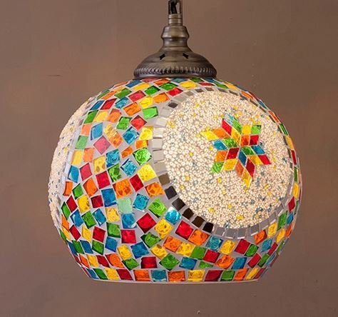 カラフルなモザイクガラス風の楽しいペンダントランプです。