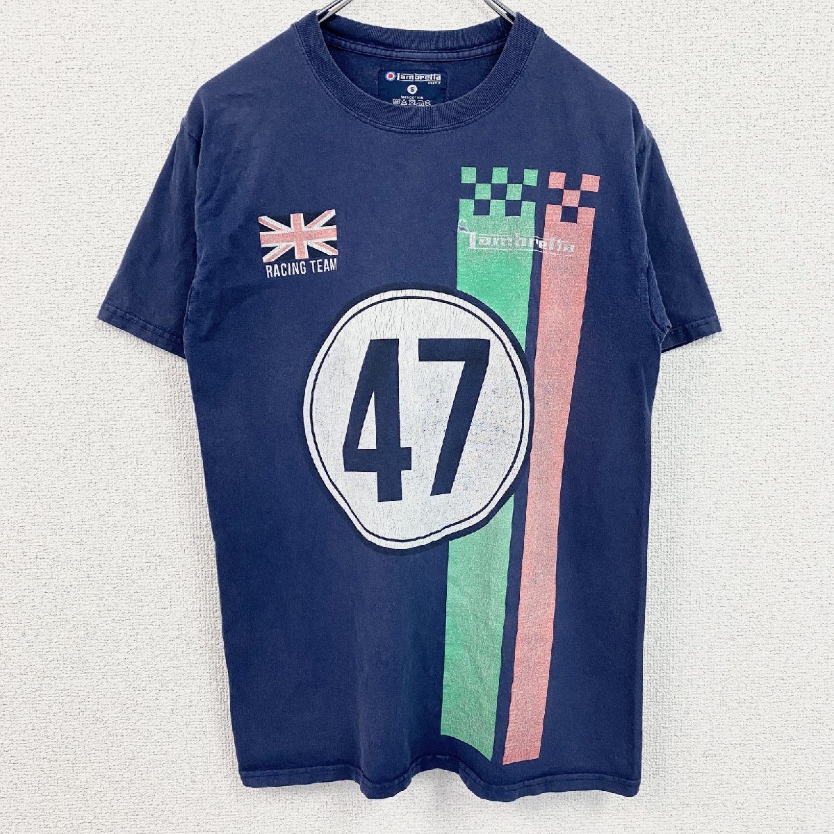 - 古着 used Lambretta 半袖レーシングデザインプリントTシャツ イギリス クルーネック ネイビー Sサイズ
