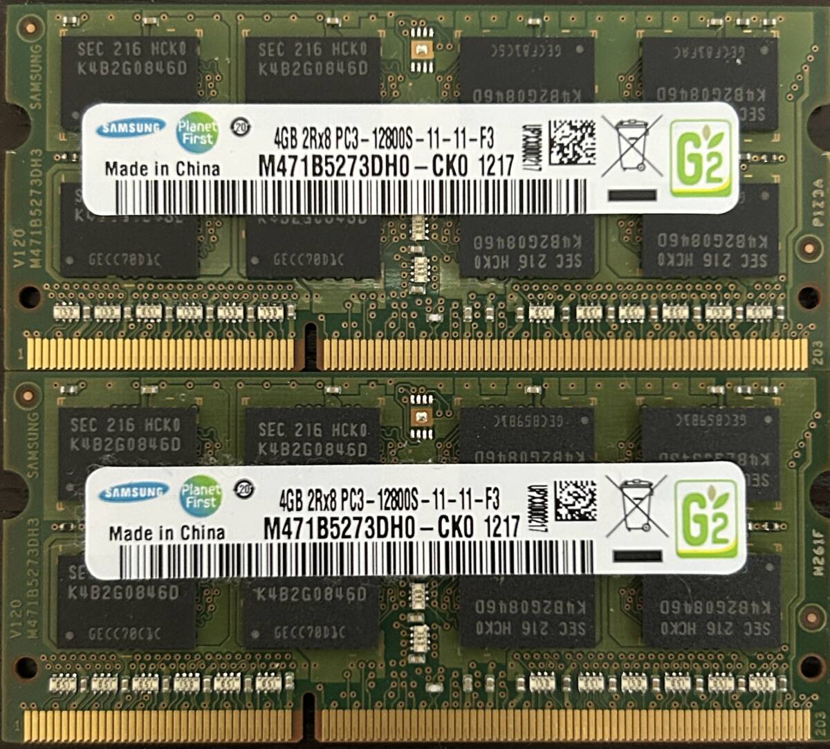 - 即決 動作確認済み SAMSUNG サムスン SO-DIMM 204pin DDR3 PC3-12800S 4GB×2枚 ノートパソコン用 916