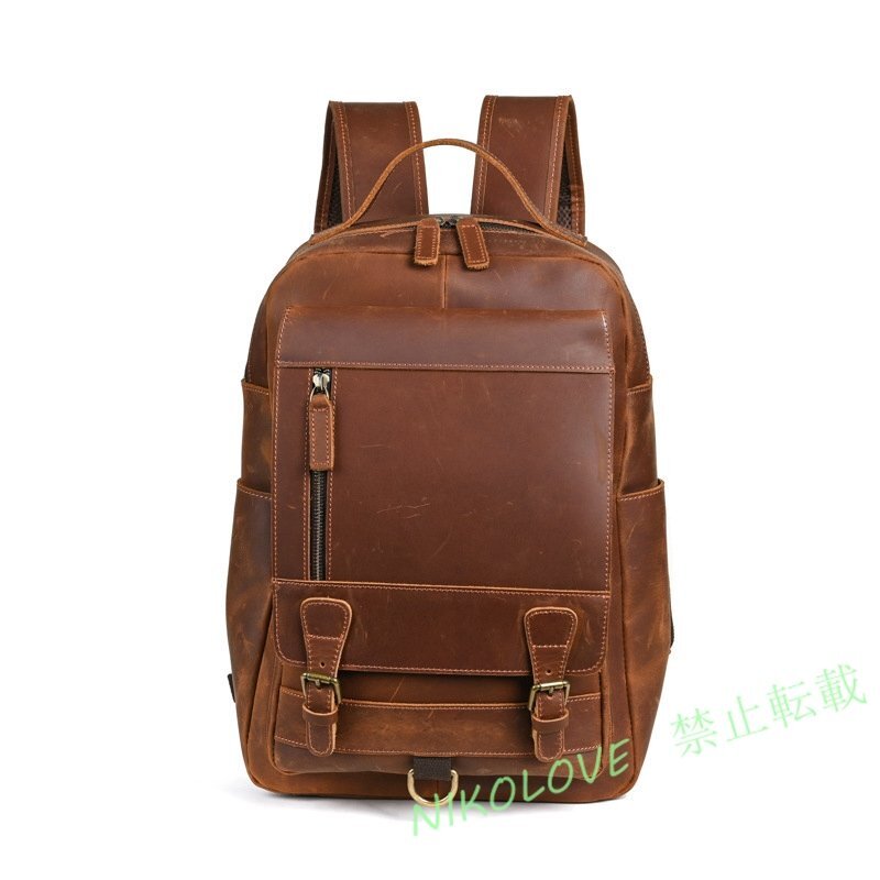 - ☆新品国内稀少!本革 リュックサック メンズ レザー バックパック レトロ リュック アウトドア 通勤通学 カジュアル兼用 ブラウン