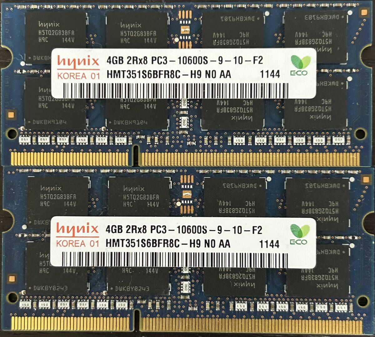 > 即決 動作確認済み hynix ハイニックス SO-DIMM 204pin DDR3 PC3-10600S 4GB×2枚 ノートパソコン用 709