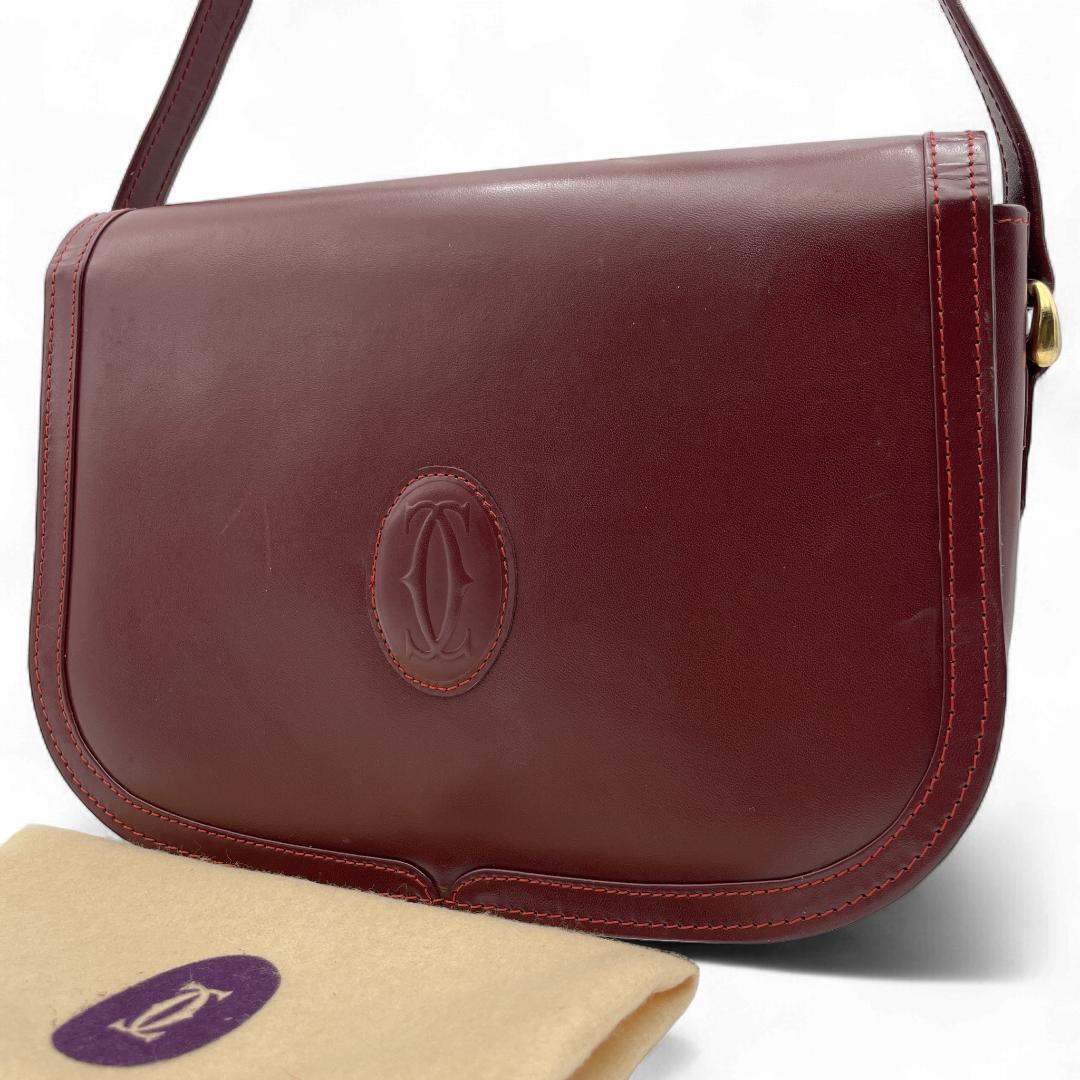 - 良品 Cartier メッセンジャーバッグ レザー ボルドー マストライン