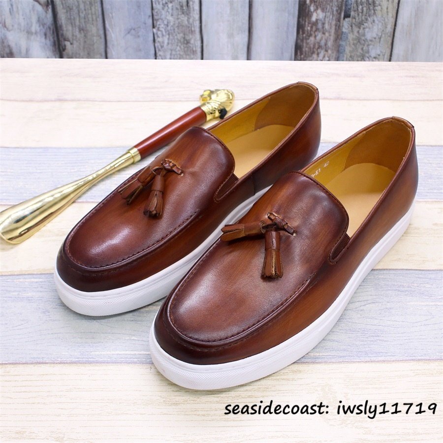 - 最高級★牛革 メンズ スリッポン タッセルローファー ビジネスシューズ 本革 レザーシューズ 超希少 職人手作り 紳士靴 宴会 新品 25.5cm