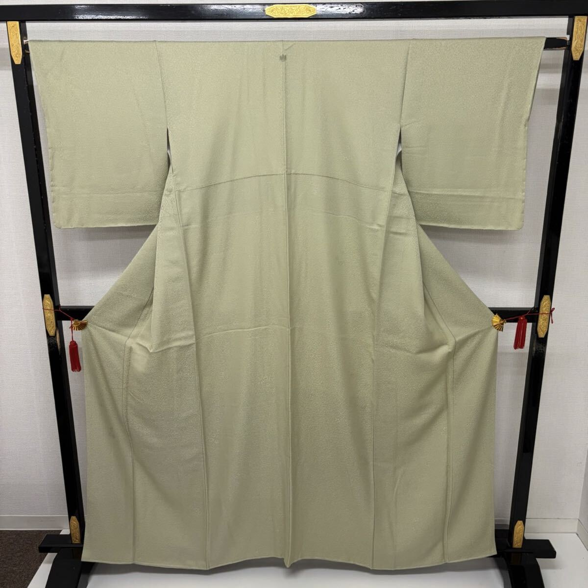 - 色無地 はんなり薄い緑 一つ紋 着物 正絹 W-5421