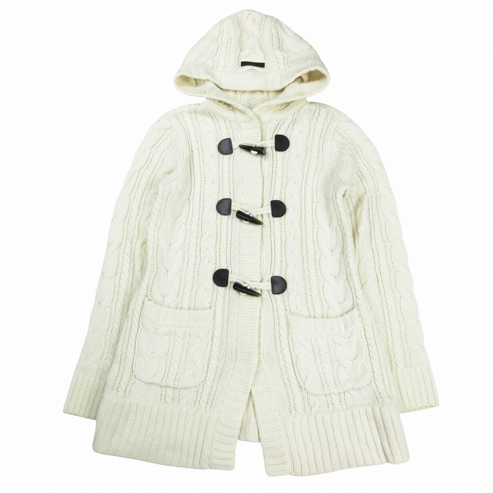 > バーバリーブルーレーベル BURBERRY BLUE LABEL ケーブルニット ダッフルコート ジャケット サイズ38 M ホワイト レディース 【中古】