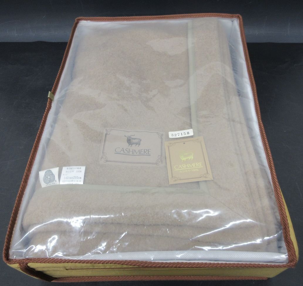 > [ZEROnet] 山甚物産 カシミヤ カシミア 100% 毛布 140×200cm シングルサイズ ブラウン 寝具 ケース有 美品 (2) ×X710-03