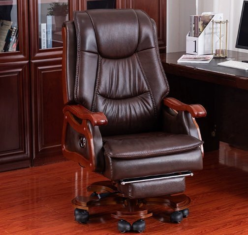 - 木製の椅子のボス回転回転することができます牛革の椅子を持って横たわることができますオフィスチェアの足を置く