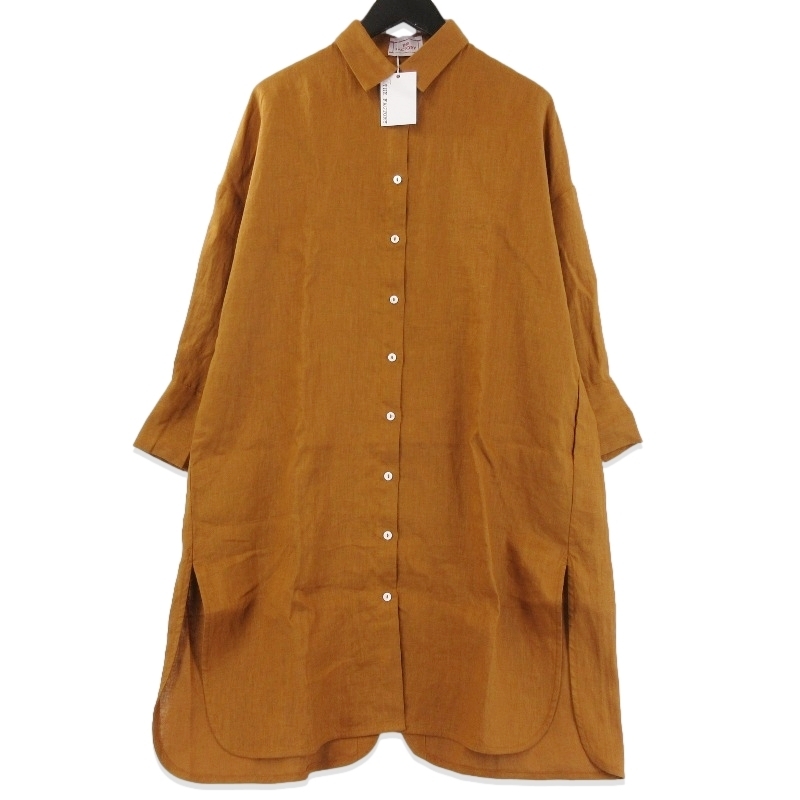 > 未使用 THE FACTORY ザファクトリー シャツワンピース リネン TF2310506 リネン ロングシャツ レディース Brown F タグ付き 71013901
