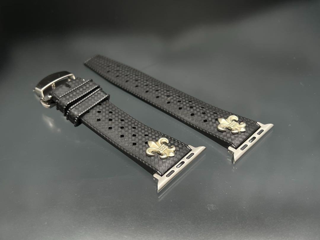 > ブラック アップルウォッチ フレアチャーム ラバーベルト Dバックル付 49mm 46mm 45mm 44mm 41mm 40mm 42mm 38mm ウルトラ