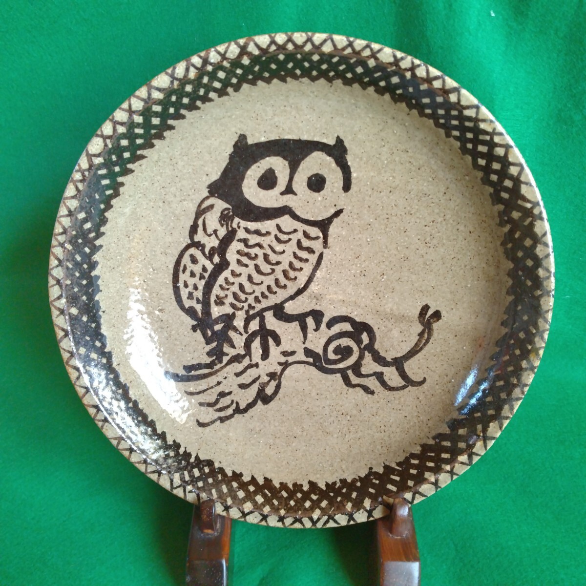 - バーナード リーチ?印 フクロウ図 皿★口縁と底に欠け?窯傷?★貫入?地貫?★フリモノ★ヤマト80サイズ発送●実物はもっと濃い色