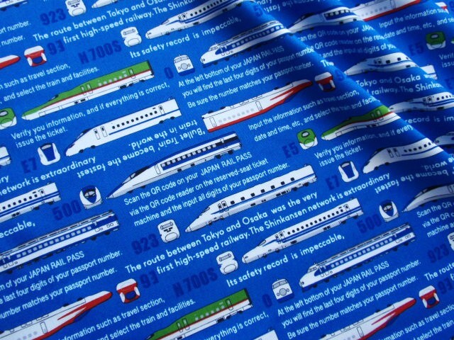 - 即決♪1m 新幹線 電車 綿100%オックス ブルー 入園入学グッズ♪