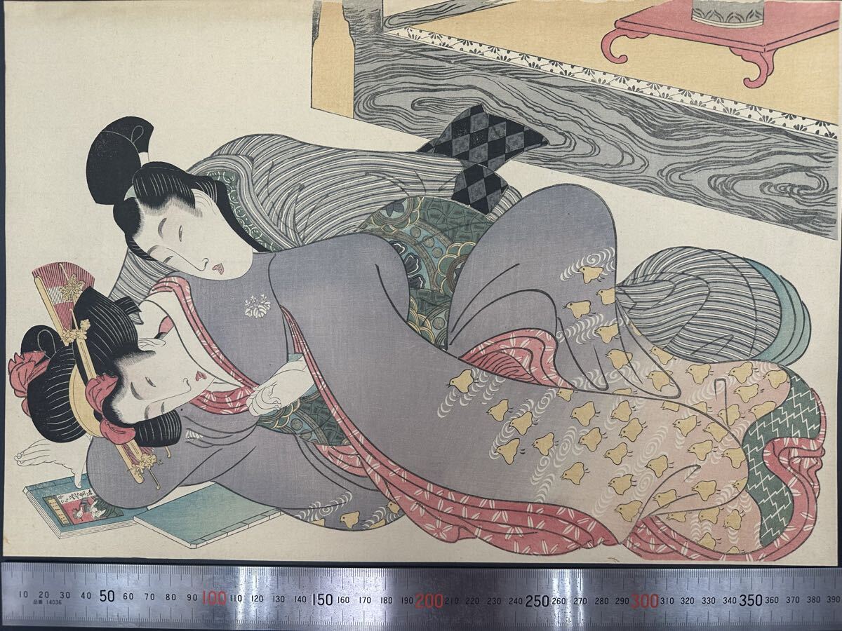 - 【真作】大正期 浮世絵木版画 菊川英山「出会茶屋」あぶな絵 美人画 大判 錦絵 保存良い
