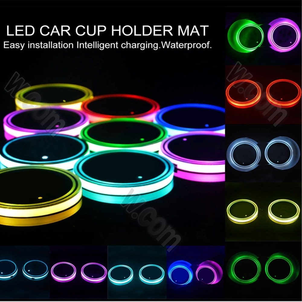 - USB LEDコースター 2個 カップホルダー イルミネーション 充電 LEDコースター イルミネーション USB充電式 カスタム インテリア 内装 新品
