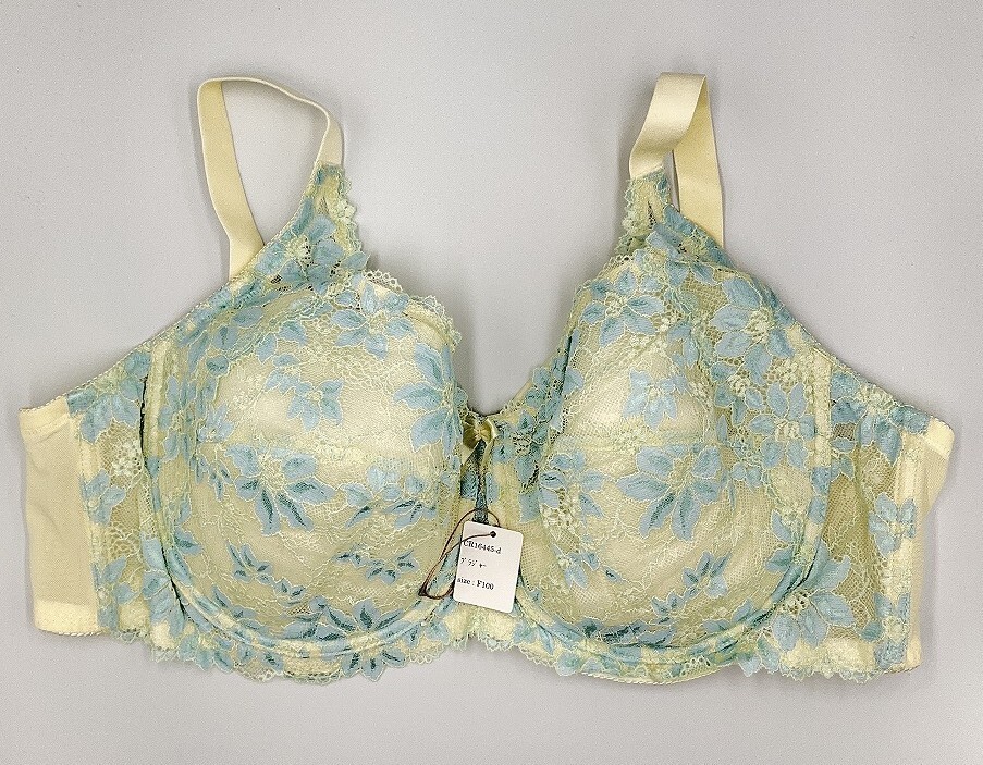 - CR16445 IB⑦【特価】新品 大きい ブラジャー F100 イエロー 花柄 レース リボン 脇高 刺しゅう ストレッチ レディース