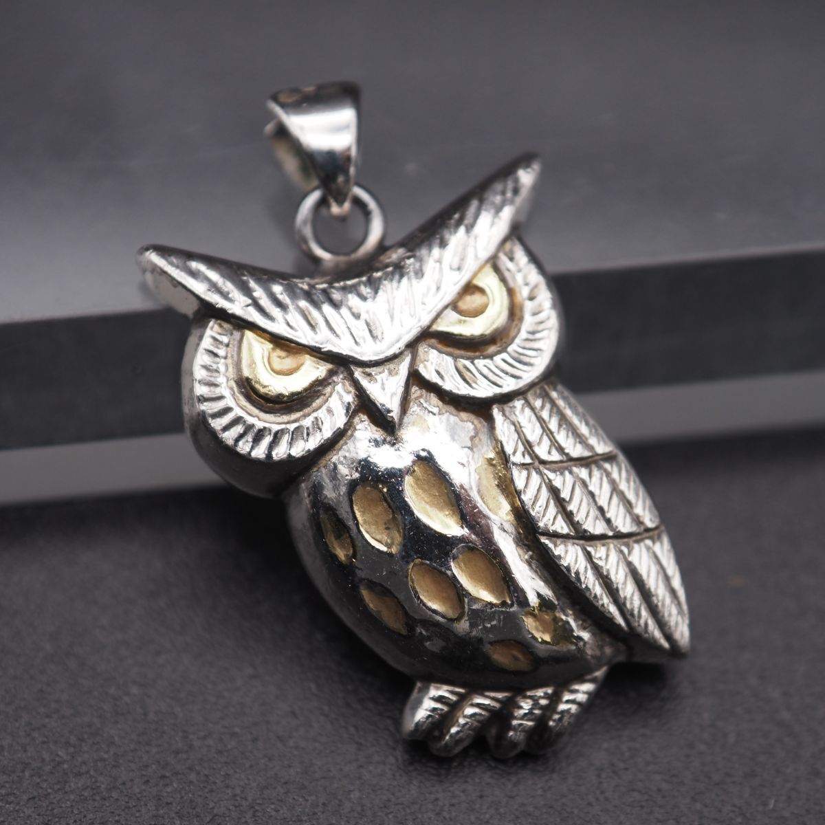 - G936 ヴィンテージ SILVER 銀製刻印 ペンダント トップ 梟 フクロウ ゴールド デザイン シルバー チャーム ヘッド