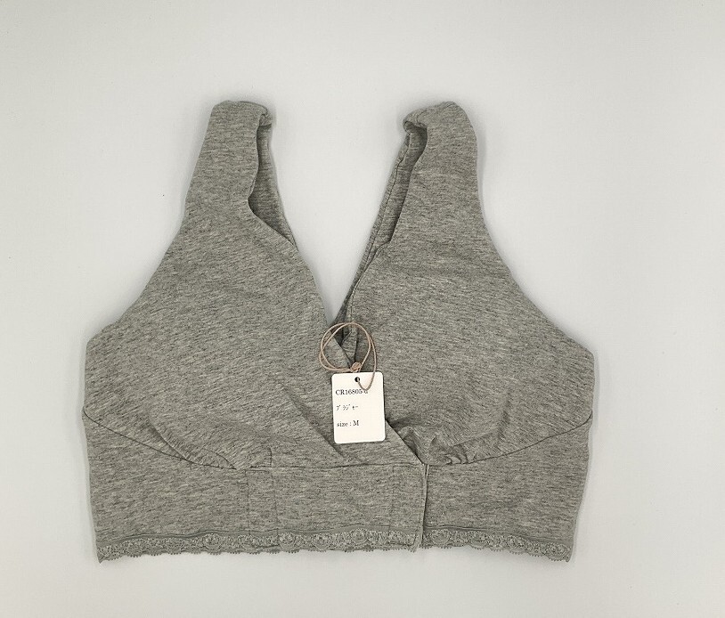 - CR16805 IB⑦【特価】新品 ブラジャー M グレー ノンワイヤー 刺繍 ストレッチ 術後 シンプル レディース