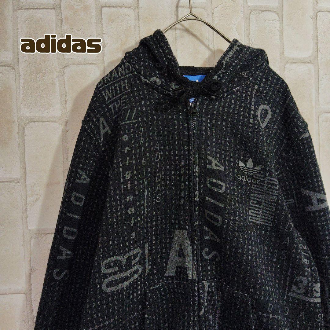 - adidas アディダス パーカー ジップアップ 黒 総柄