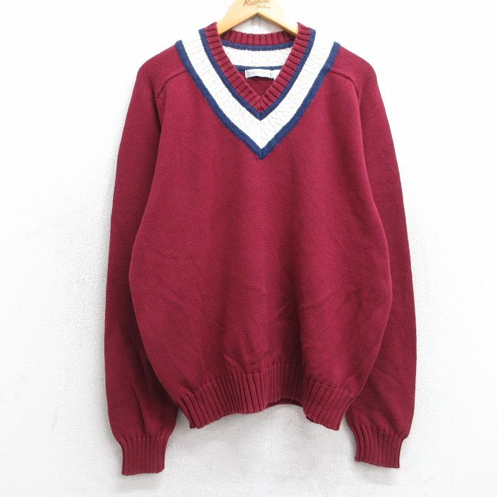 - L/古着 長袖 チルデン セーター メンズ 00s ラグラン コットン Vネック エンジ 25oct20 中古 ニット トップス
