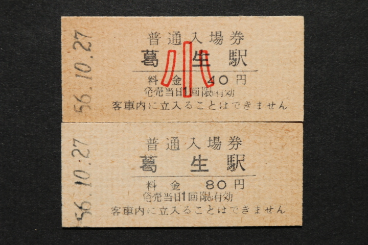 - 東武鉄道 入場券 葛生駅 大人券小児券2枚セット 80