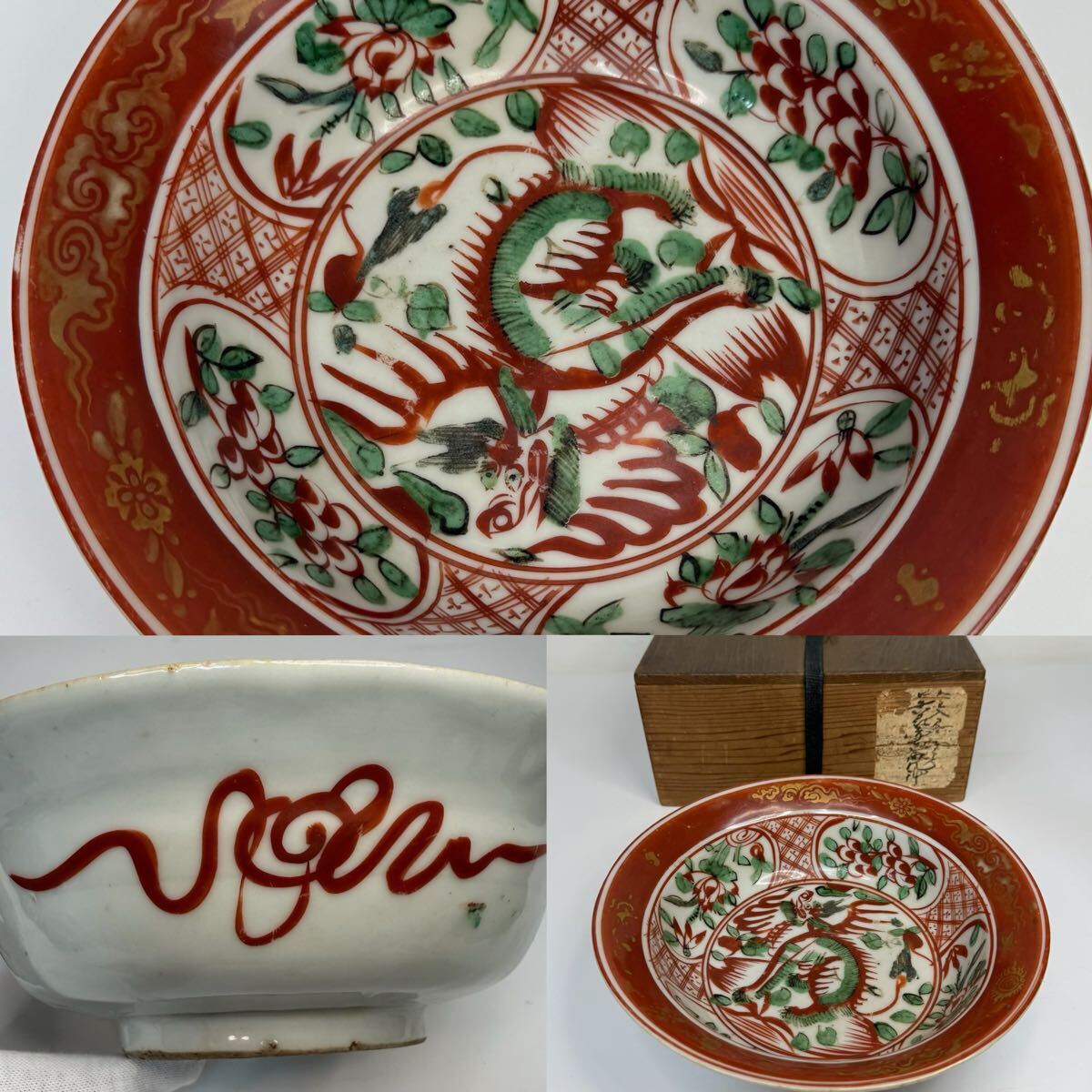 - 中国古美術 時代物 唐物 茶碗 呉須 呉須赤絵 陶磁器 茶道具 飾皿 中国古玩 骨董品 共箱