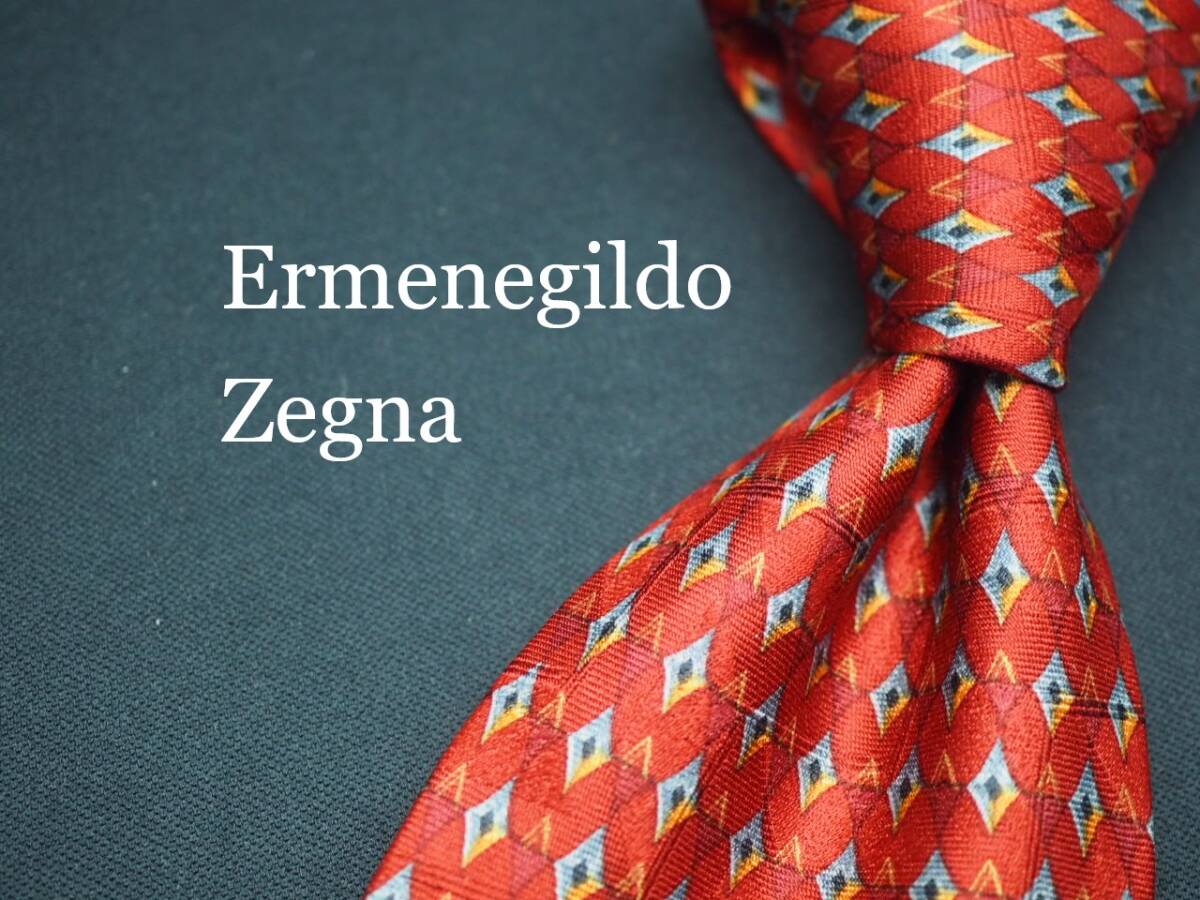 > 美品【Ermenegildo Zegna エルメネジルドゼニア】 F2656 赤系 SILK ブランド ネクタイ 古着 良品 転売 仕入