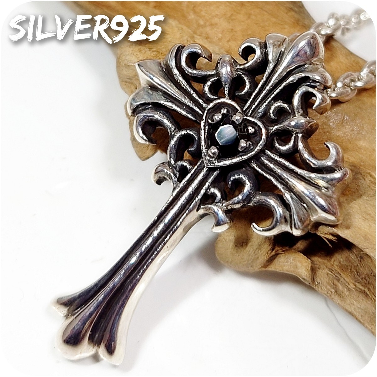 > 2711 SILVER925 ブラックガーネット クロストップ シルバー925 天然石 ユリ リリー 百合 十字架 ハート ヴィンテージ アラベスク フレア