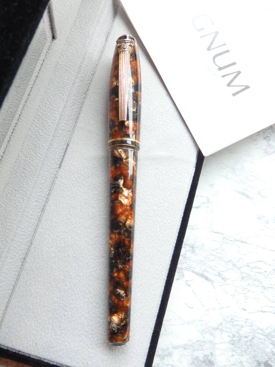 - ◆【極上物】シグナム デ・デヴィーナ・プロポティオーネコレクション セルロイド製 アンバー万年筆 ペン先:18K750ソリッドゴールド M