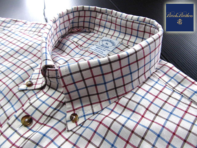 > ★美品 ブルックスブラザーズ BROOKS BROTHERS ボタンダウンシャツ 長袖 XLサイズ 希少品 ハンサムチェック ブルー×ブラック×ブラウン