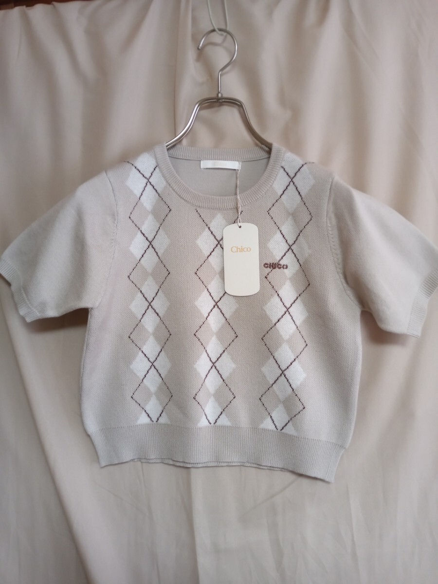 - 4556 ★★ Chico 半袖ニットショート丈 新品 サイズF 定価5720円