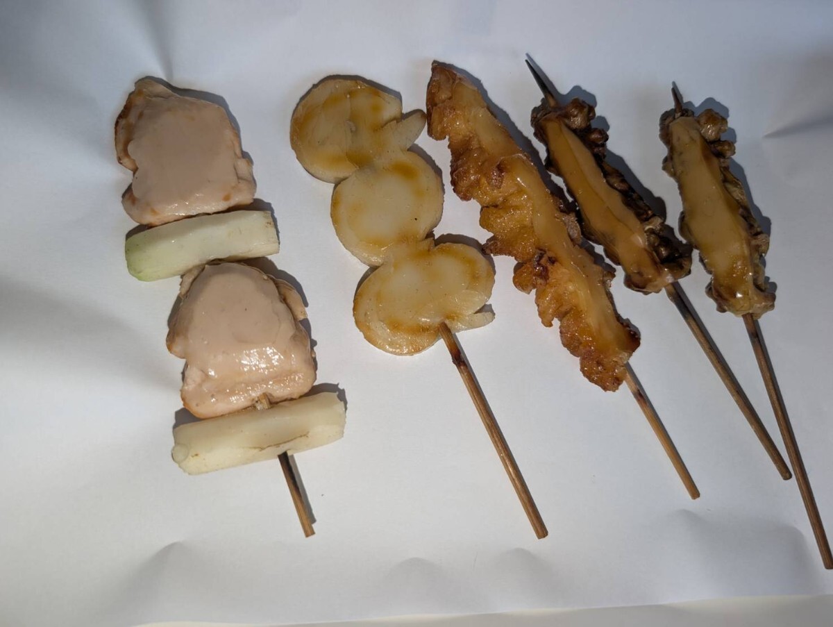 - 【まいづる食品サンブル】ねぎま イカしそ巻き ちくわ 皮 鰻肝焼き串 F-45 単品売り