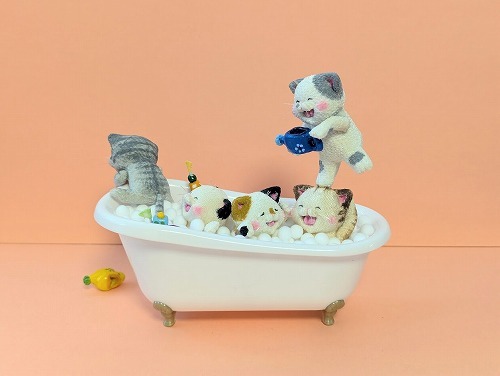 - ハンドメイド 手作り 縮緬 古布 猫 ミニチュア ★ お風呂ねこ 兄弟猫 ★