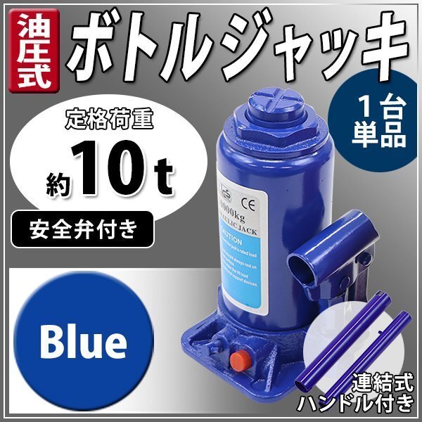 - 送料無料 油圧式 ボトルジャッキ 定格荷重約10t 約10000kg 1台 単品 油圧ジャッキ だるまジャッキ ダルマジャッキ 安全弁付き ブルー