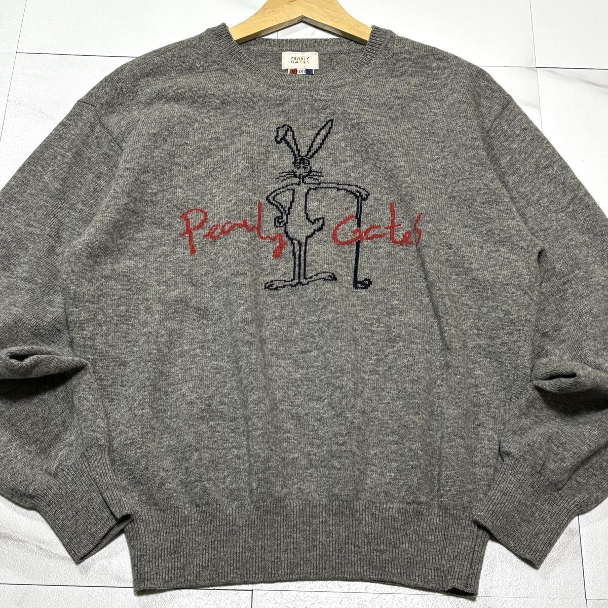 > 極美品/ Lサイズ相当 PEARLY GATES パーリーゲイツ ニット GOLF ゴルフウェア 両面刺繍 セーター ウール グレー