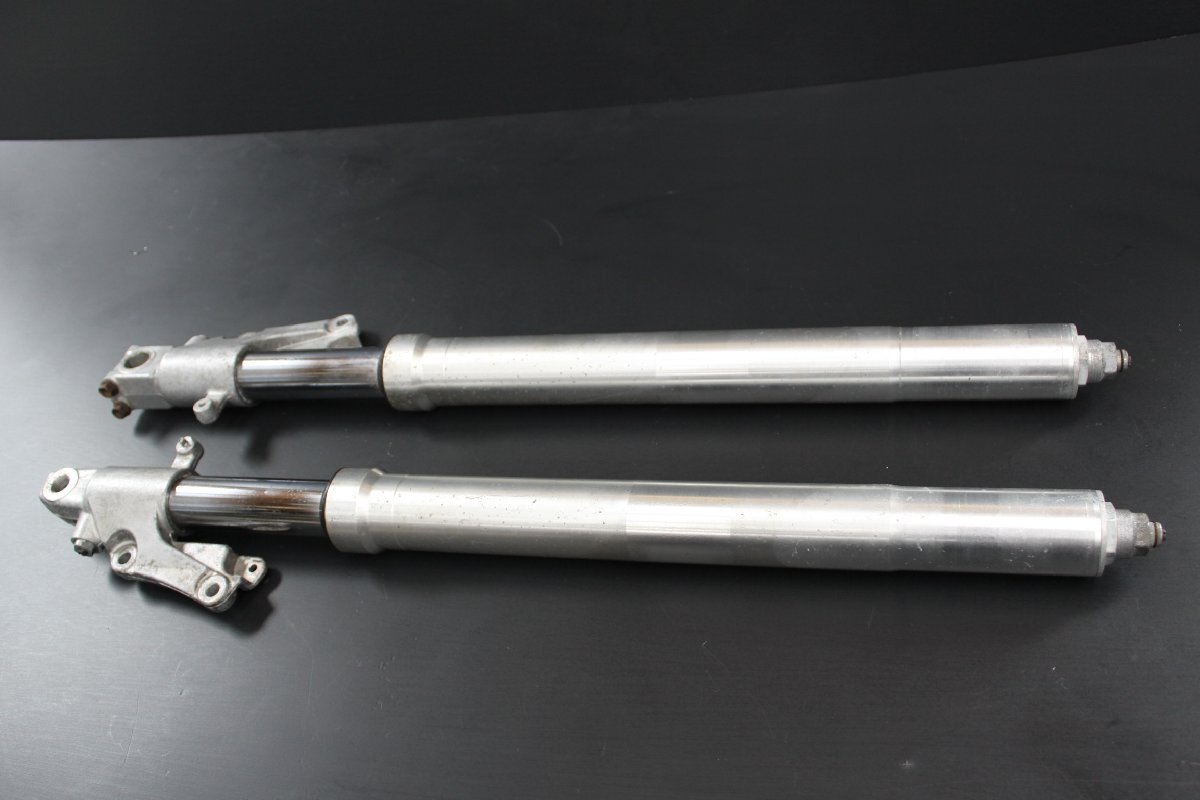 RGV250ーΓ(VJ22Aー1041**)SPの実働車から取り外しの純正フロントフォークセット 調整式の中古です。インナーに点サビ有り、伸び側の調整に固着有り、キズ、汚れ等ありますがワレ、曲がり等はありません。中古につきノークレーム、ノーリターンでお願いします。他にも同車種、その他車輌からの取り外しの部品を多数出品しますのでご覧ください。発送は 元払いにて発送いたします(落札後、ご計算致します。基本的にはヤマト運輸です。)200サイズを超えるものは佐川急便着払いにて発送致します。