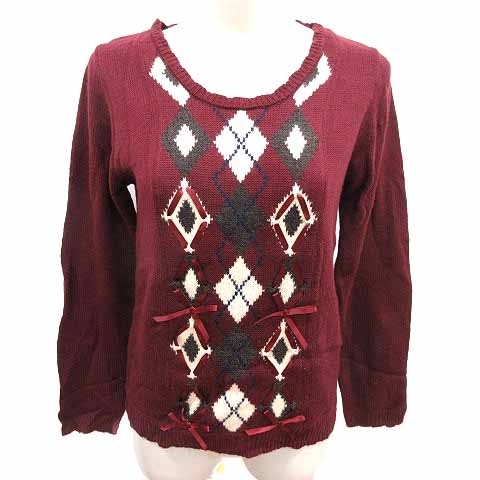 > アクシーズファム axes femme ニット セーター アーガイル柄 長袖 M 赤 レッド /YK レディース