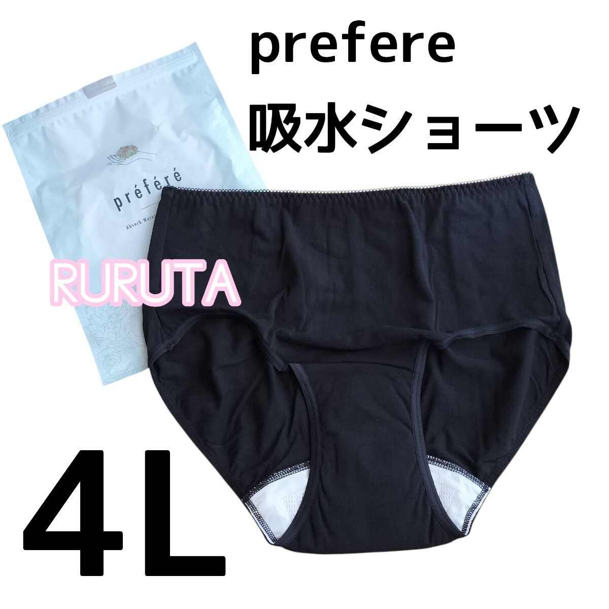 - 【ブラック 黒】prefere 4L吸水ショーツ1枚 サニタリーショーツ レディース パンツ ヒップ107cm〜115cm