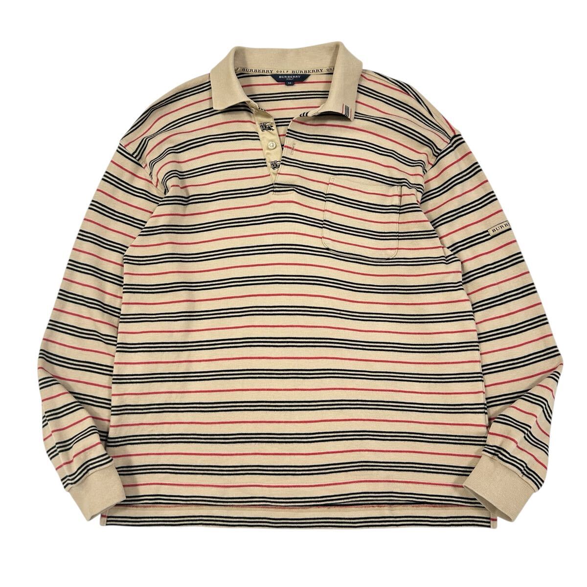 - 良品 Burberry/バーバリー ポロシャツ 長袖 ボーダーパターン メンズM 三陽商会取り扱い品