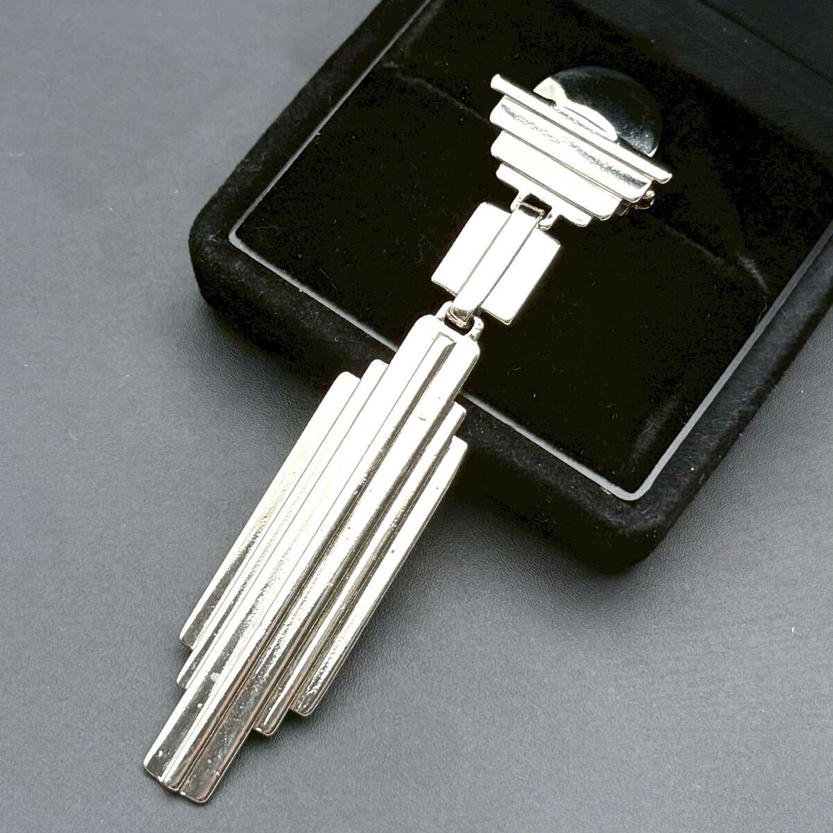 > 【希少・極美品】Gianni Versace ジャンニ ヴェルサーチ ブローチ ピンブローチ シルバー アールデコ コスチュームジュエリー 縦長