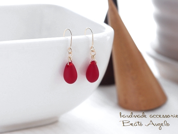 - ■+angelo+K14GF チェコドロップのプチピアス(p-500)シャムマット 一粒 シンプル レッド チタン 樹脂 イヤリング