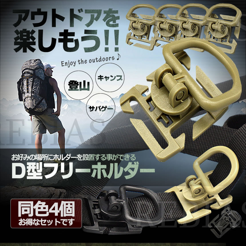 - 送料無料 D型フリーホルダー 4個セット 【ベージュ】 リュック カバン カラビナ 登山 ドリンク アウトドア サバゲ