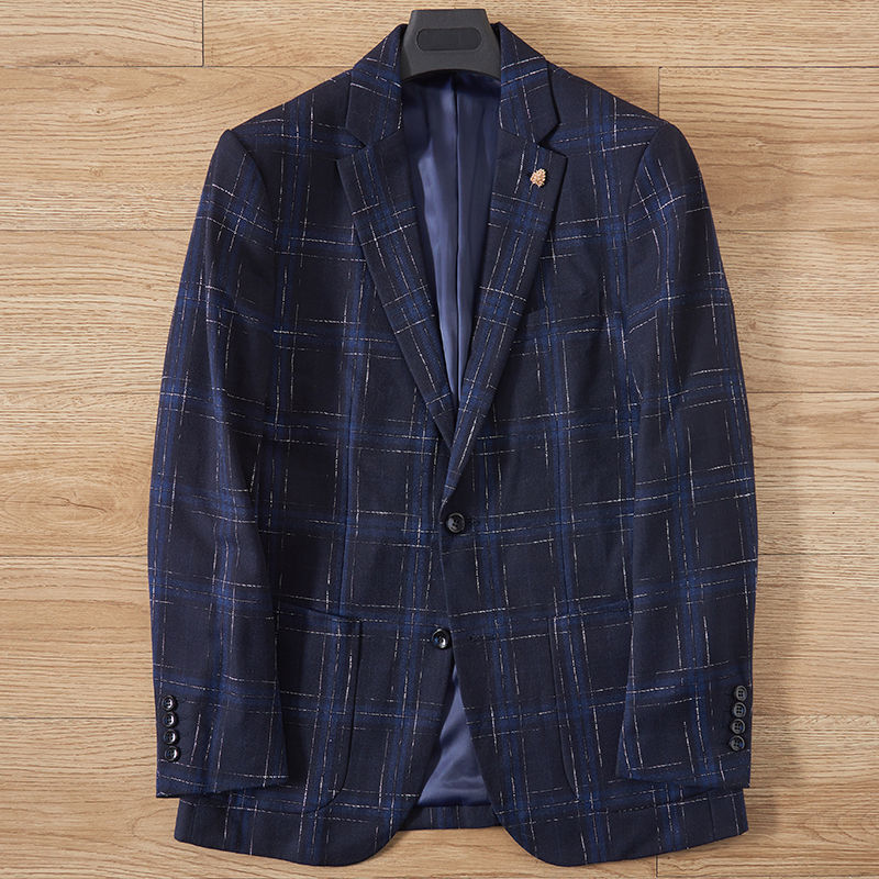> Y6453-2XL ネイビー 新品 ウール混 テーラードジャケット ノッチドラペル 秋冬 厚手 防寒 暖かい ノーアイロン チェック柄 メンズ ビジネス