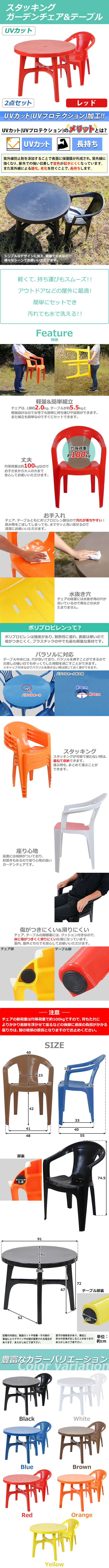 - 送料無料 ガーデンチェア ガーデンテーブル 2点セット UVカット レッド ガーデンセット ポリプロピレン製 ガーデンテーブル&チェアー1脚