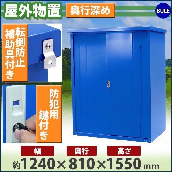 - 送料無料 屋外物置 スチール製 家庭用収納庫 鍵付き 青 幅約1240mm×奥行約810mm×高さ約1550mm 倉庫 納屋 物置き スチール物置